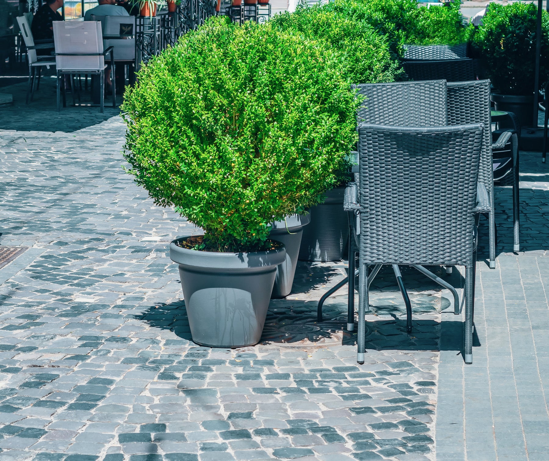 Dwarf Myrtle Myrtus communis 'Compacta' - 5 Gallon   Size: 5 Gallon Height: 1-2 ft. Width: 1-1.5 ft. Exposure:  Sun  Spacing:  1-2 ft. Water Needs: Regular Foliage: Evergreen Bloom Season:  Height (at Maturity):   2-3 ft. Width (at Maturity):   2-3 ft. Soil Preference: