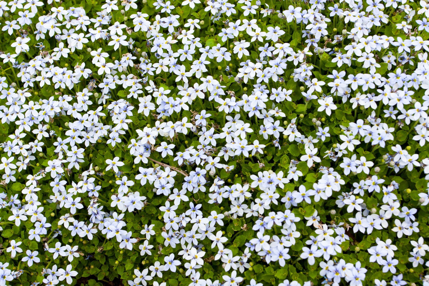 Isotoma White, Isotoma Blue Star Creeper - Flat   Size: Flat Plants per Flat: Full Exposure:  Shade or Partial Shade Spacing:  3 - 6" Water Needs: Regular Foliage: Bloom Color: White Bloom Season:  Spring and Summer Height (at Maturity):  1-3" Width (at Maturity):   3-6" Soil Preference:  Peat Moss