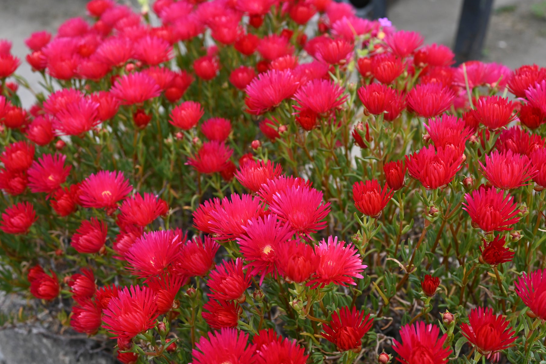 Iceplant Lampranthus 'Red Trailing' - Flat Size: Flat Plants per Flat: 50-60 Exposure: Sun Spacing: 6-12" Water Needs: Regular Foliage: Bloom Season: Spring - Summer Height (at Maturity): 1 ft. Width (at Maturity): 1-2 ft. Soil Preference: Peat Moss Iceplant Lampranthus 'Red Trailing' is a stunning succulent groundcover that produces masses of bright red, daisy-like flowers from late spring to early fall. This cultivar is known for its trailing habit and its ability to spread quickly and cover large areas of ground. The plant has thick, fleshy leaves that are green in color and may take on a reddish tint in bright sunlight. Its flowers are approximately 2 inches in diameter and have a daisy-like shape with many petals surrounding a central disk. Iceplant Lampranthus 'Red Trailing' is a low-maintenance plant that is drought-tolerant and requires very little water once established. It prefers well-draining soil and can tolerate a range of soil types, including sandy or rocky soil. This plant is a great choice for rock gardens, slopes, or as a groundcover in sunny areas of the garden. Its trailing habit also makes it a good choice for container gardens, hanging baskets, or window boxes. Iceplant Lampranthus 'Red Trailing' is a hardy plant that can tolerate hot, dry conditions, and is resistant to pests and diseases. It is also attractive to butterflies and other pollinators, making it a great addition to a pollinator garden. Overall, Iceplant Lampranthus 'Red Trailing' is a beautiful and versatile plant that can add a burst of vibrant color to any garden or landscape. Its low-maintenance nature and drought tolerance make it a popular choice for gardeners looking to add some beauty and color to hot, dry areas of their garden.